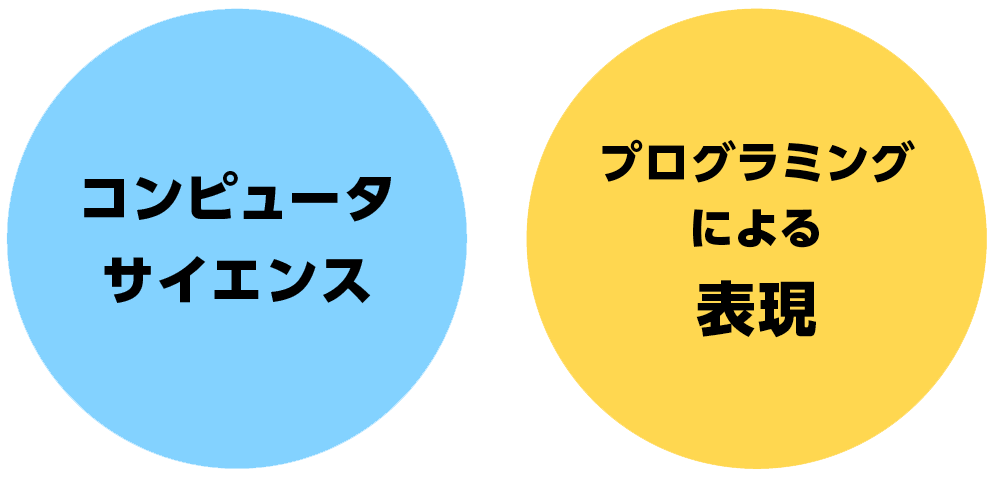 プログラミングが「できるようになる」だけでなく、プログラミングで「作りたいものを自ら考えられるようになる」ことを目指します。本カリキュラムはこどもたちに身につけてもらいたい「コンピュータサイエンス」と「プログラミングによる表現」の2本柱で構成されています。積み木遊びで物理の直感が身に付くように、プログラミングでの遊びは「コンピュータサイエンス」の直感が身につきます。「プログラミングによる表現」とは、従来からあるメディアのデジタル化を超えて、プログラムの実行によって自動生成される表現です。その一例はビデオゲームですが、うごく模様や作曲装置も含まれます。これらを、一番大切にしている「コンピュータは自分達のもの」という気持ちに繋がるように構成したのが本カリキュラムです。
