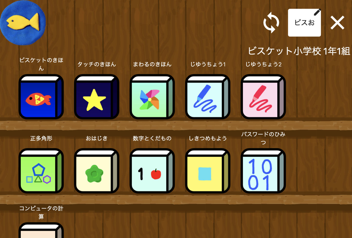 - 1つの制作画面で作った作品=1作品となります。例えば「ビスケットの基本」では、「三角」「お魚」「おばけ」「パクパク」「海のランド」で作品を作ると、1人あたり5作品という数え方になります。なお、先生が作った作品はカウントされません。