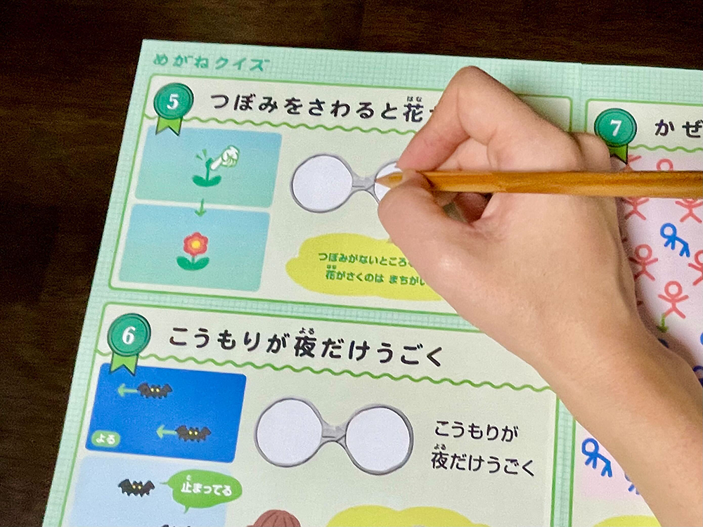 めがねクイズは、実際にプログラミングしながらノートに鉛筆で記入して学びます。
